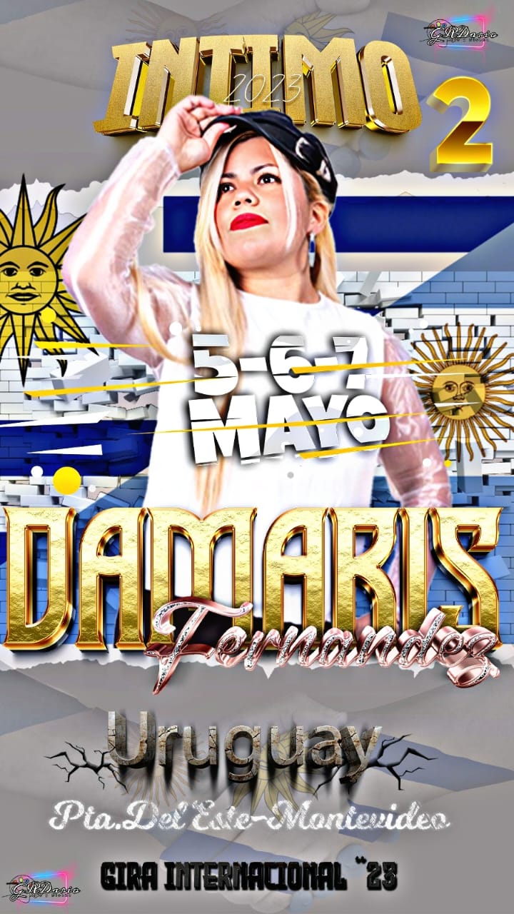 Este 5 6 y 7 de Mayo Damaris Fernández estará en Uruguay en su gira por el pais vecino, presentándose en Punta del Este y Montevideo, Damaris Fernández viene creciendo día a día y su música se expande desde Argentina ya para toda Latinoamérica.